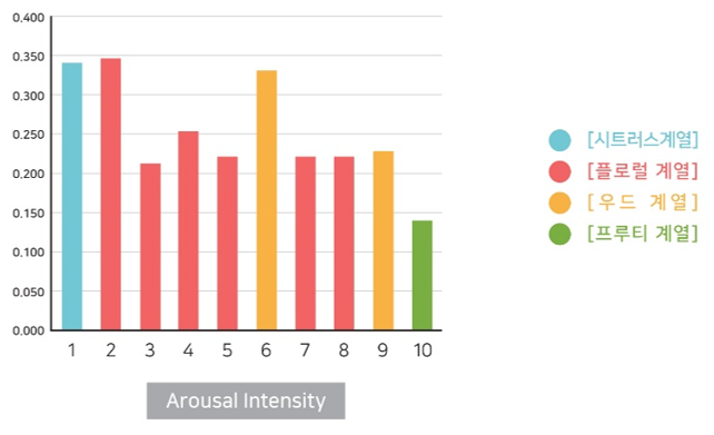실험을 시작하기 전, 참가자에게 평소 좋아하는 향수 계열을 질문하였고, 참가자는 ‘플로럴 계열’의 향수를 가장 선호한다고 응답하였습니다.