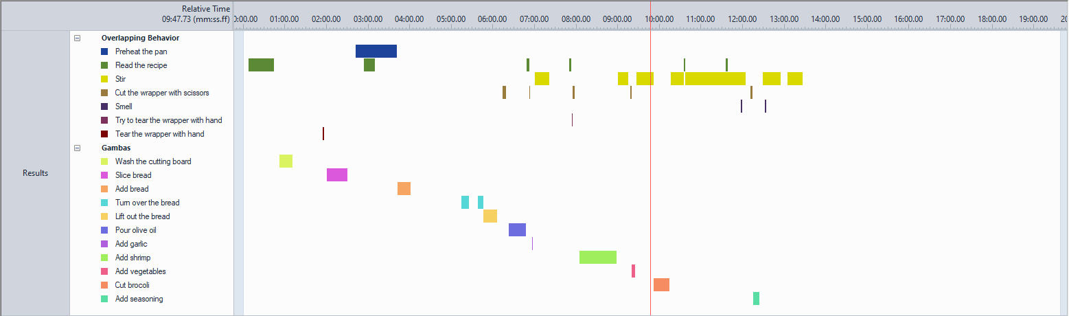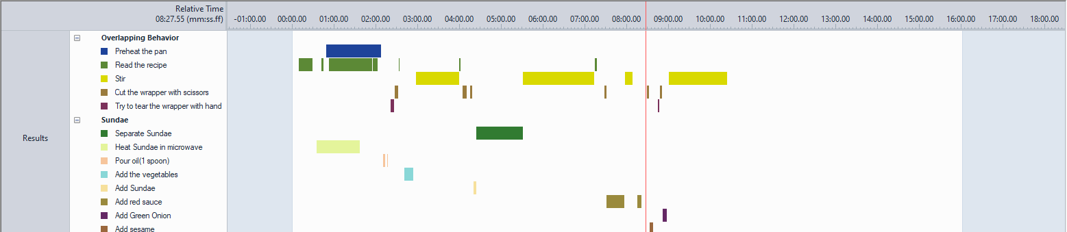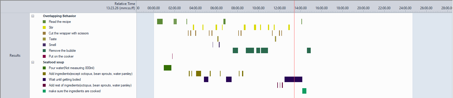 조리하는 과정을 녹화한 동영상을 행동이벤트 코딩 및 분석 소프트웨어 The Observer XT 로 행동 분석을 실시하였습니다.