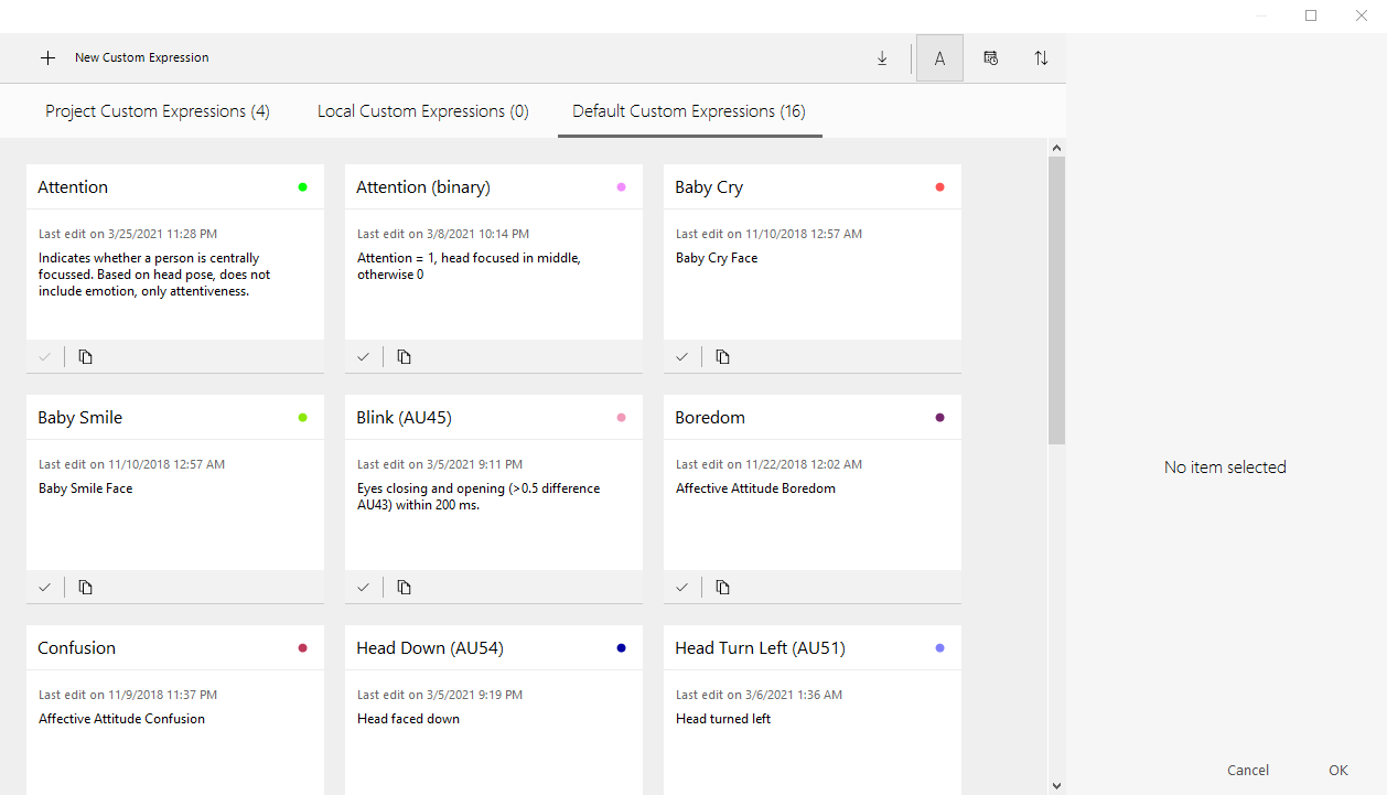 FaceReader 9은 보다 많은 종류의 Custom Expressions을 지원합니다.