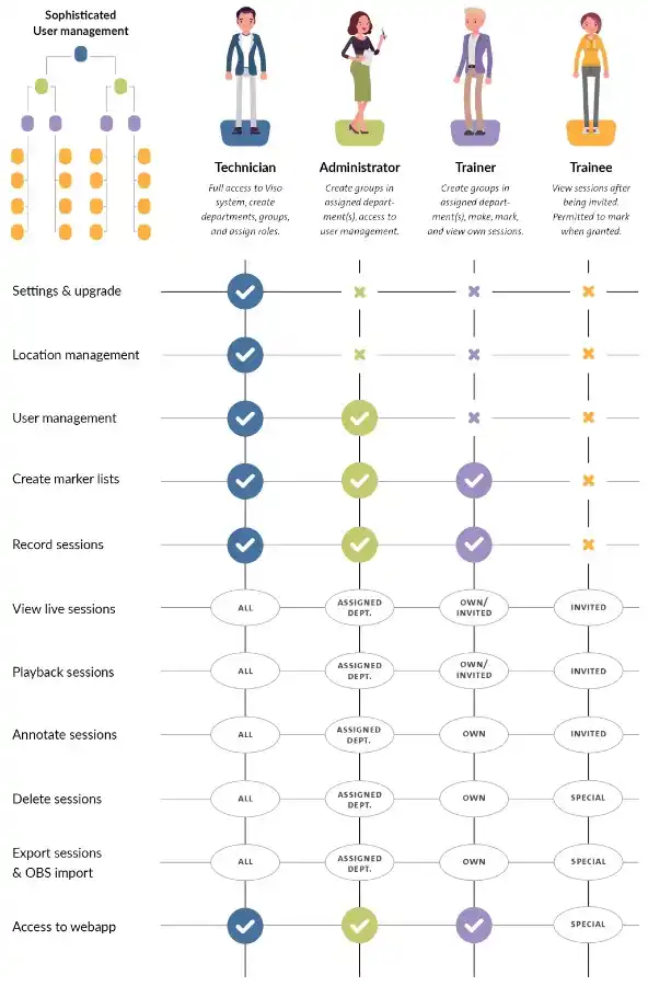 4개의 사용자 계정은 Technician, Administrator, Trainer, Trainee로 구분되며 각 사용자에 대한 권한은 다음과 같은 권한을 부여, 높은 수준의 보안을 약속합니다.