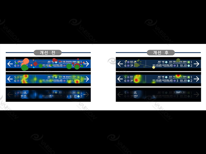 - 플랫폼 #5 지하철 이용객들은 개선 전(기존방식) 안내사인을 보다 신속하게 인지하는 것으로 나타남