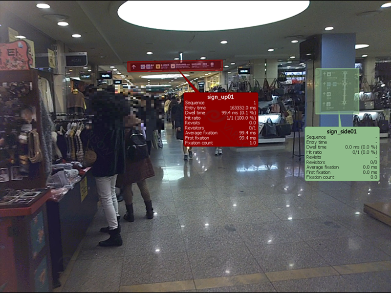 - 지하도상가 이용객들은 달대형 사인을 통해 출구 정보를 인지하는 경향으로 나타남