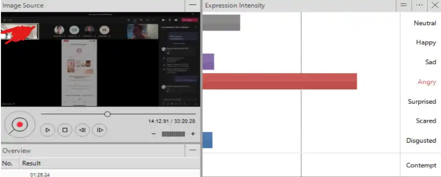 테스트는 일주일에 걸쳐 진행되었으며, 사용성 테스트가 완료되면 사용자 경험에 대해 자세히 알아보기 위해 일대일 인터뷰를 진행하였습니다. 모든 테스트와 인터뷰는 Teams플랫폼을 사용하여 화상회의를 통해 진행, 녹화되었습니다. 그런 다음 FaceReader소프트웨어를 사용하여 사용성 테스트 녹화에 대한 감정 분석을 진행하였습니다.