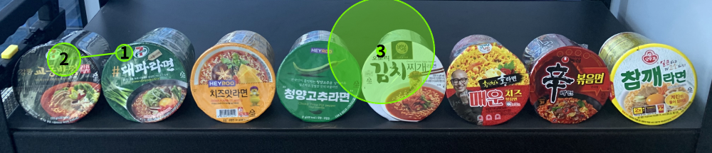 컵라면에서 소비자는 스낵과 다르게 7-Eleven의 제품에 가장 먼저 시선이 향한 것을 알 수 있습니다.