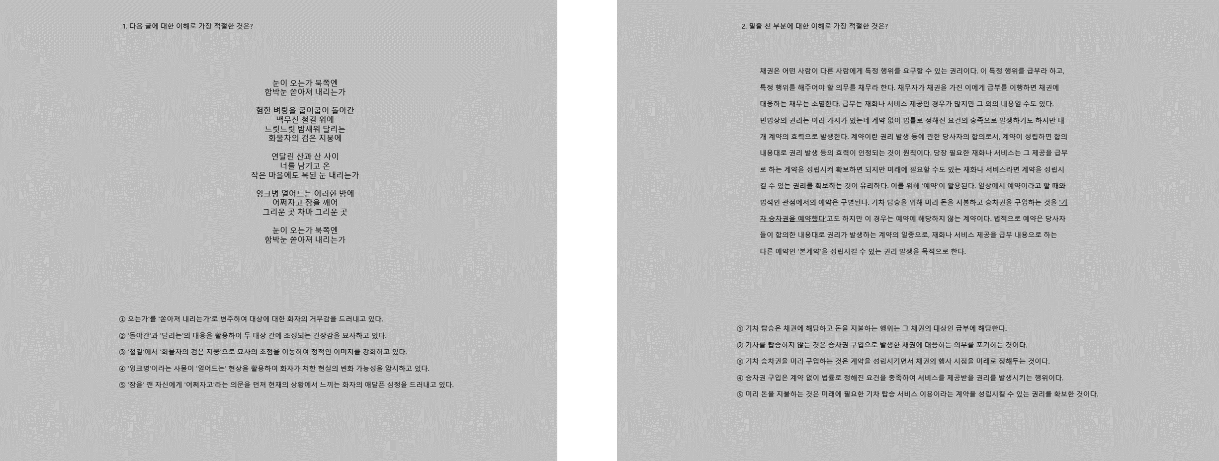 난이도와 글 성격을 비교해보기 위해 2개의 문제를 아래와 같이 자극물로 제시하였습니다.