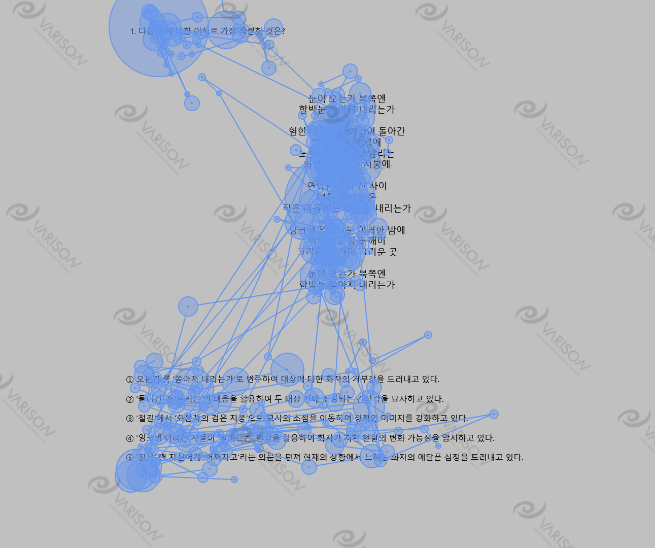 첫 번째로, 수능 국어 영역 문제 중 문학 작품과 그 문제의 시선흐름을 보여줍니다.
