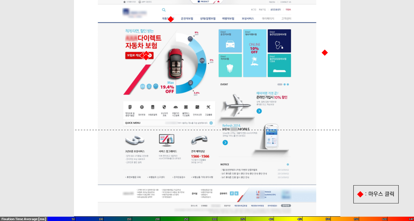 시선추적 데이터를 시각화 및 분석하는데 대표적으로 사용되는 Heat Map, Scan Path을 사용하여 웹 사용성 평가를 진행하였습니다.